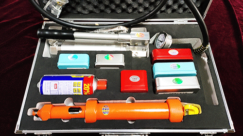 注入式堵漏工具由手動高壓泵、 注膠槍及一組注膠接頭組成,可以在不停工、不停車和不動用電焊火種的條件下,采用內部注射密封劑料,表面粘接、鋼帶捆扎等工藝手段加以