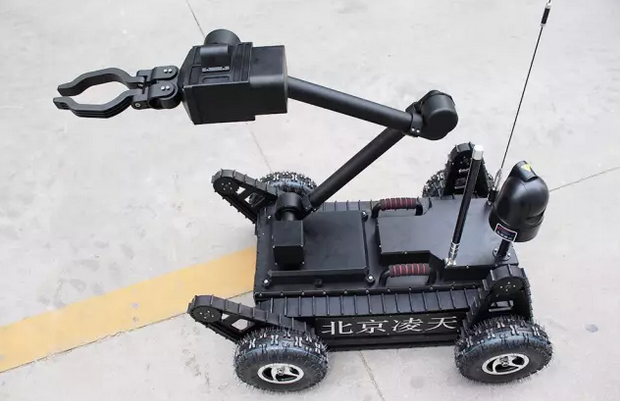 機械臂部分配備爆炸物銷毀器、瞄準器,能現(xiàn)場對爆炸物進行摧毀;