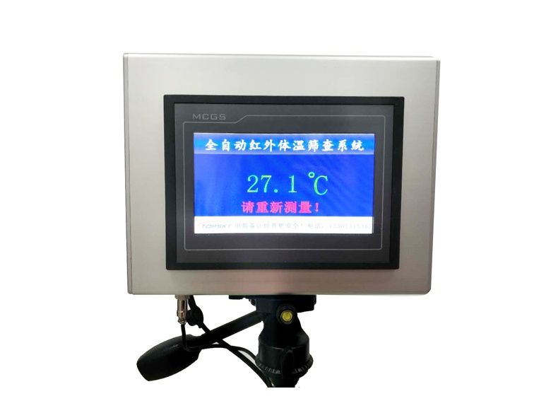 全自動紅外體溫篩查系統(tǒng)是由非接觸式紅外探頭,傳感器,光 學(xué)系統(tǒng),智能檢測控制系統(tǒng),高清7寸觸摸顯示屏等部分組成.能夠 在不接觸人體的情況下,依據(jù)人體發(fā)射紅外輻射強度,轉(zhuǎn)換成實際 的溫度數(shù)值,并通過人機交互界面進(jìn)行顯示和報警.高清屏幕顯示, 可保證測量結(jié)果清晰可見,高溫聲光報警有助于工作人員快速篩 查可疑人員;該產(chǎn)品可以同三腳架搭配 使用,方便攜帶和快速部署,可應(yīng)用于機 場、港口、車站、學(xué)校、賓館和醫(yī)院等 公共場所的體溫篩檢;