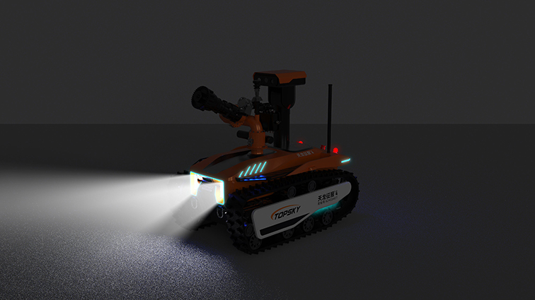 機(jī)器人采用無線遙控設(shè)計,遙控器與監(jiān)視器一體/分離,可實時的顯示電池、內(nèi)部的各種信息,機(jī)器人狀態(tài)、現(xiàn)場溫濕度、有毒有害氣體濃度報警信息等控制機(jī)器人前進(jìn)、后退、轉(zhuǎn)向等運動。具備遠(yuǎn)程偵察能力,機(jī)身搭建升降云臺、高清攝像頭、熱成像攝像頭、氣體傳感器三類環(huán)境感知設(shè)備和云臺控制設(shè)備,也可聯(lián)動聲光報警模塊提醒消防人員或群眾,有效避免危險。在通過遠(yuǎn)程偵察手段有效獲取現(xiàn)場火源信息后,機(jī)器人配備的大功率電機(jī)可以幫助消防人員將消防水袋拖拽至危險火源區(qū)域進(jìn)行滅火,并能搭載各類國內(nèi)、外的多種消防水泡,并能夠遠(yuǎn)程控制發(fā)射水或泡沫?;谒鋫涞氖耙裟K和揚聲器模塊,拾取現(xiàn)場環(huán)境聲音,即使消防官兵未靠近消防現(xiàn)場也能夠聽到搜救現(xiàn)場的群眾呼救聲,并通過揚聲器模塊與群眾進(jìn)行現(xiàn)場對話。