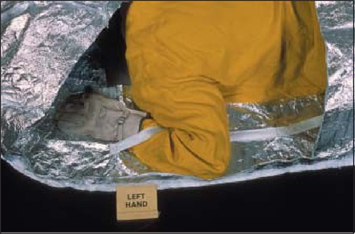 1)展開避火罩時,一定要用手臂和腿、腳固定住避火罩,這樣既可以防止避火罩被風吹走,又可以隨時進出避火罩內(nèi);