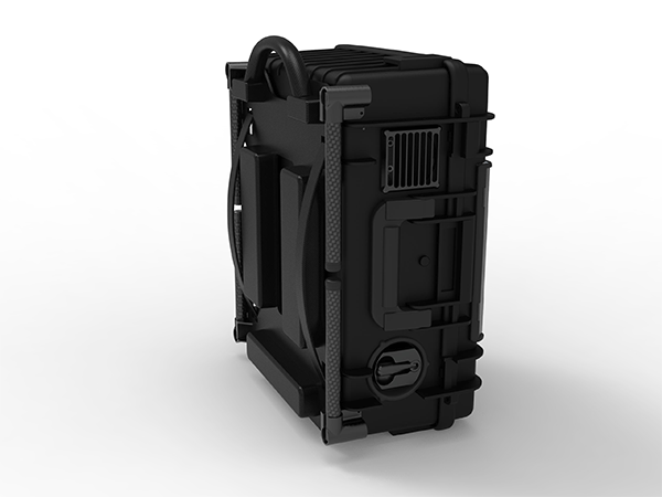供電系統(tǒng)為背負式系統(tǒng),系留箱控制臺配備LED照明系統(tǒng);系留箱提供腳架折疊功能,在地面展開時可以避免與惡劣地面環(huán)境接觸,從而保護系留箱;箱體可背負式設(shè)計,箱體材料采用環(huán)保材質(zhì),與人體背部貼合處符合人體工程學設(shè)計,舒適耐用,適合單兵長距離背負。