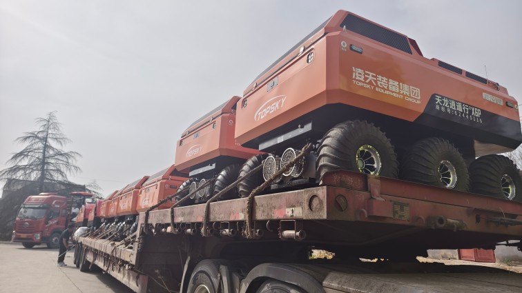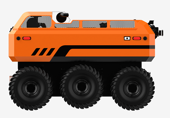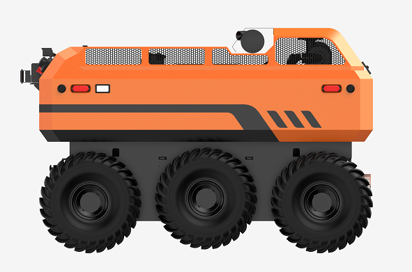 采用6×6輪式底盤,液壓驅(qū)動(dòng),裝有真空輪胎,另加配水下推進(jìn)器,增加水中行進(jìn)效率,水陸兩棲,可全地形行駛;