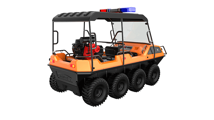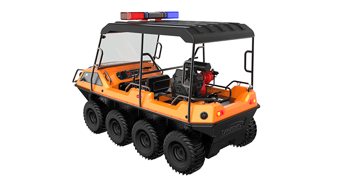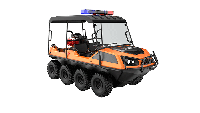 在復(fù)雜惡劣的地形條件和自然環(huán)境下,森林消防水陸兩棲全地形車可以讓搜救隊員和攜帶的救援裝備快速到達(dá)救援現(xiàn)場,減少徒步帶來提供消耗,完成最后一公里最好五分鐘緊急救援任務(wù)。森林消防水陸兩棲全地形車可配備點到絞盤、救援擔(dān)架組件、探照燈、警示燈、警報器、脫鉤、破拆工具等裝備, 給救援團(tuán)隊提供救援保障,更安全的解救傷員和疏散群眾。