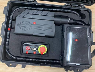 激光破拆工具組+智能遠(yuǎn)距離激光切割系統(tǒng)+未爆彈激光銷(xiāo)毀器,破拆工具的六脈神劍。裝置主要由激光發(fā)射器機(jī)箱、激光發(fā)射器(含觀瞄模塊)三腳架轉(zhuǎn) 臺(tái)、外置電池、連接線(xiàn)、手持控制終端、電池充電器等配件組成。